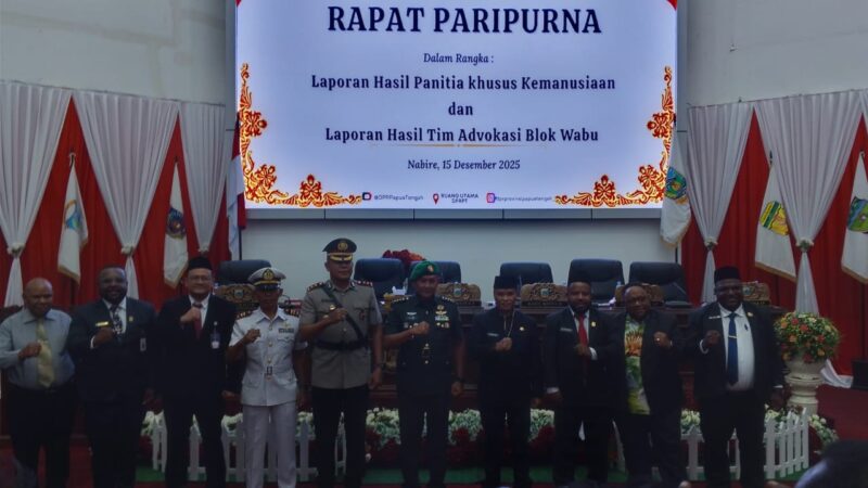 Jurnalpapuanews.com || NABIRE — Dewan Perwakilan Rakyat Provinsi Papua Tengah (DPRP PT) baru saja menyelesaikan Rapat Paripurna penting yang berfokus pada dua isu krusial: kemanusiaan dan masa depan Blok Wabu.