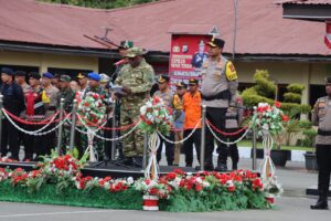 Pemandangan di Mapolres Nabire sore itu tampak gagah dengan barisan pasukan gabungan. Kehadiran tokoh-tokoh penting seperti Kapolda Papua Tengah Brigjen Pol. Alfred Papare, S.I.K. dan Danrem 173/PVB Brigjen TNI I Ketut Mertha Gunarda menegaskan komitmen tinggi TNI-Polri dalam menjaga keamanan wilayah.