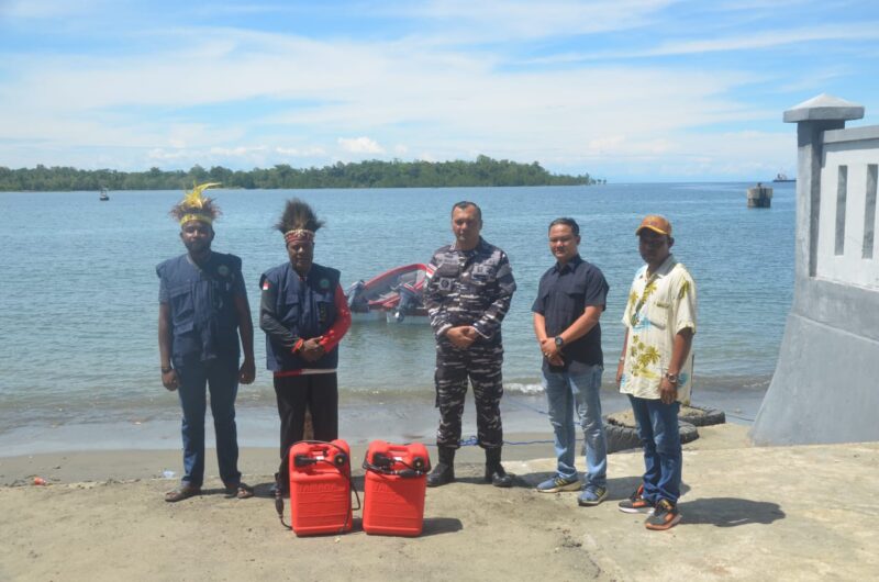 Dukungan tersebut diwujudkan melalui penyerahan dua unit perahu jenis PNG berukuran 7 x 1,5 meter, lengkap dengan dua unit mesin tempel Yamaha 40 PK. Bantuan ini secara resmi diserahkan oleh Komandan Lanal Nabire, Letkol Laut (P) Dwi Prasetyo, di Pantai Labani Samabusa pada Sabtu, 13 Desember 2025.