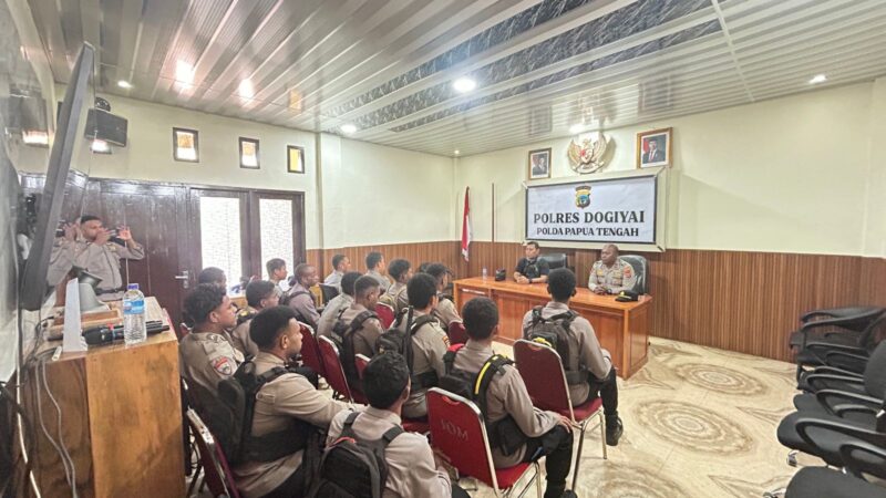 Jurnalpapuanews.com || Kigamani – Pelaksana Tugas (Plt) Kapolres Dogiyai, AKBP Dennis A. Putra,S.H., S.I.K.,M.H. didampingi Kasat Samapta IPDA Roland D. Masoka, memimpin kegiatan pembinaan dan pengarahan kepada seluruh personel Satuan Samapta Polres Dogiyai. Jumat (08/04/2026).