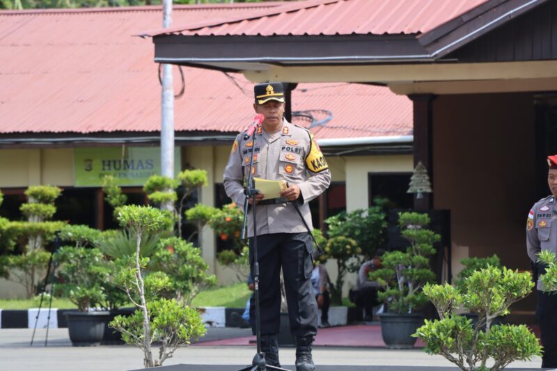 Upacara dipimpin langsung oleh Kapolres Nabire, AKBP Samuel D. Tatiratu, S.I.K., dengan didampingi oleh Kabag SDM Polres Nabire, AKP Supyanto, S.H., yang bertindak sebagai Perwira Upacara.