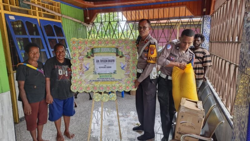 Jurnalpapuanews.com || NABIRE – Satuan Lalu Lintas (Satlantas) Polres Nabire menunjukkan kepedulian nyata terhadap masyarakat dengan menyerahkan bantuan bahan makanan (Bama) dan karangan bunga kepada keluarga korban kecelakaan lalu lintas berinisial Alm. RD. Penyerahan bantuan ini dilaksanakan di rumah duka, Putaran 2 Kalibobo, Kelurahan Kalibobo, Kabupaten Nabire, Papua Tengah, pada Selasa (10/02/2026).