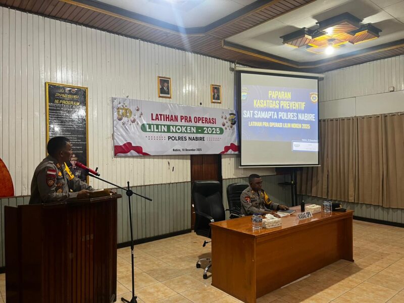 Jurnalpapuanews.com || NABIRE – Menjelang perayaan Natal 2025 dan Tahun Baru 2026, Polres Nabire bergerak cepat memastikan keamanan wilayah tetap kondusif. Pada Kamis pagi (18/12/2024), jajaran Polres Nabire melaksanakan Latihan Pra Operasi (Lat Pra Ops) Lilin Noken 2025 bertempat di Ruang RBP Polres Nabire.
