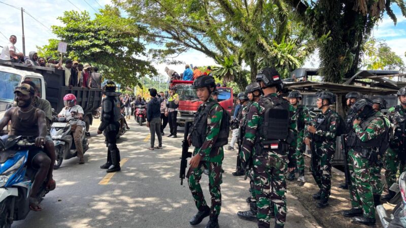 Jurnalpapuanews.com || Nabire, Papua Tengah – Dalam rangka menjaga stabilitas keamanan wilayah, Yonif TP 804/DBAY mengerahkan sebanyak 150 prajurit guna memperkuat jajaran Polri dalam pengamanan aksi penyampaian aspirasi masyarakat yang berlangsung di wilayah Kota Nabire, Selasa (7/4/2026).