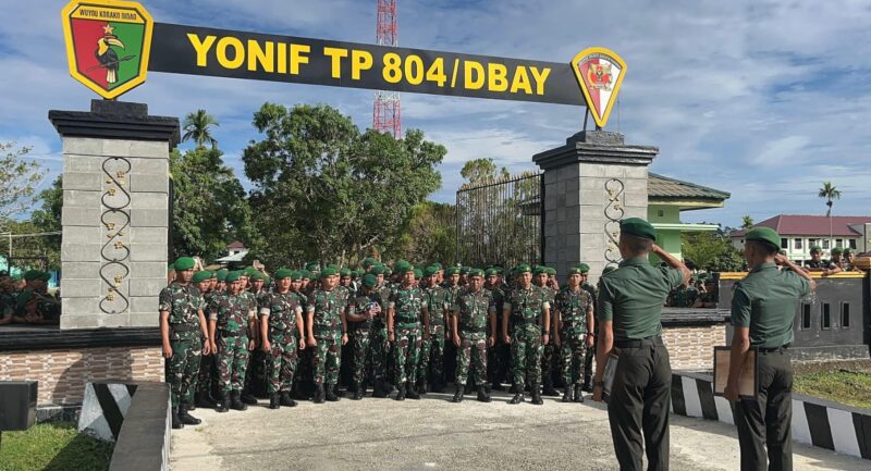 Jurnalpapuanews.com || Nabire – Yonif TP 804/DBAY melaksanakan upacara tradisi pindah satuan sebagai bentuk penghormatan dan pelepasan prajurit yang akan melanjutkan pengabdian di satuan baru. Kegiatan tersebut dilaksanakan pada Jum’at, 17 April 2026, dan dipimpin langsung oleh Wadan Yonif TP 804/DBAY, Kapten Inf Reza Pahlawan, S.Tr.Han.